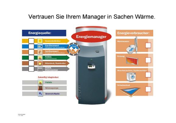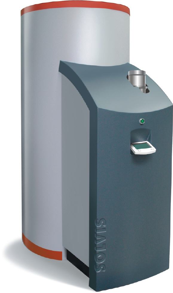 SolvisMax - der Solarheizkessel Im SolvisMax sind die modernsten Solvis- Komponenten auf kleinstem Raum zu einem kompletten Solar- Heizkessel kombiniert. Er vereint Solar-Schichtspeicher (vgl. SolvisIntegral), Gas- oder Ölkessel und legionellenfreie Wassererwärmung in einem Gerät. Er ist ein optimiertes Anlagensystem, das die Solaranlage zum festen und selbstverständlichen Bestandteil der Heizung macht. Werden zur Zeit Solaranlagen üblicherweise nur zur Warmwasserbereitung eingesetzt, so ermöglicht dieses neue Konzept auch die solare Heizungsunterstützung und Brauchwassererwärmung durch einen einzigen Kombispeicher
